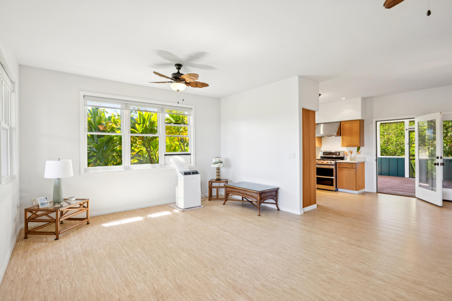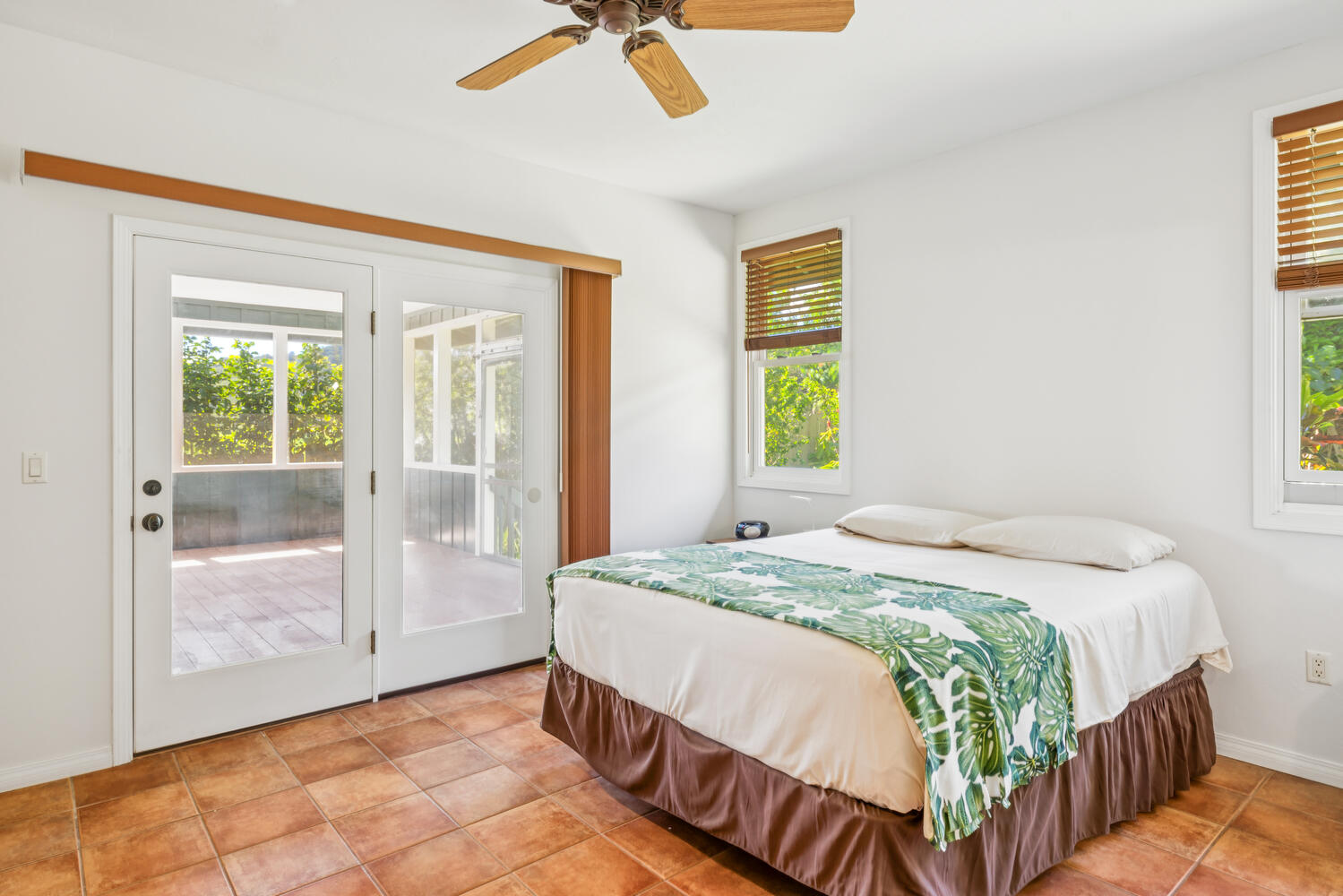This charming plantation-style home sits at the end of a private road on over half an acre of fully fenced land. Enjoy indoor-outdoor living with an open-concept layout, 9-foot ceilings, and a screened lanai. The property features mature fruit trees, energy-efficient upgrades, a 50-year roof, and a detached garage with future expansion potential. A peaceful retreat with lasting quality and island character.