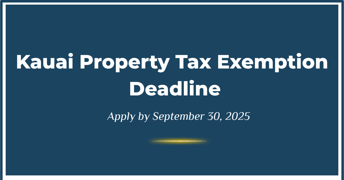 Kaua‘i Property Tax Exemption Deadline: September 30, 2025
